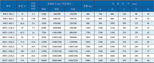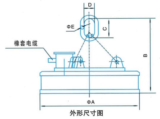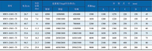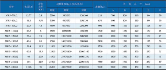 注:潛水用起重電磁鐵技術(shù)參數(shù)與常溫型電磁鐵相同。